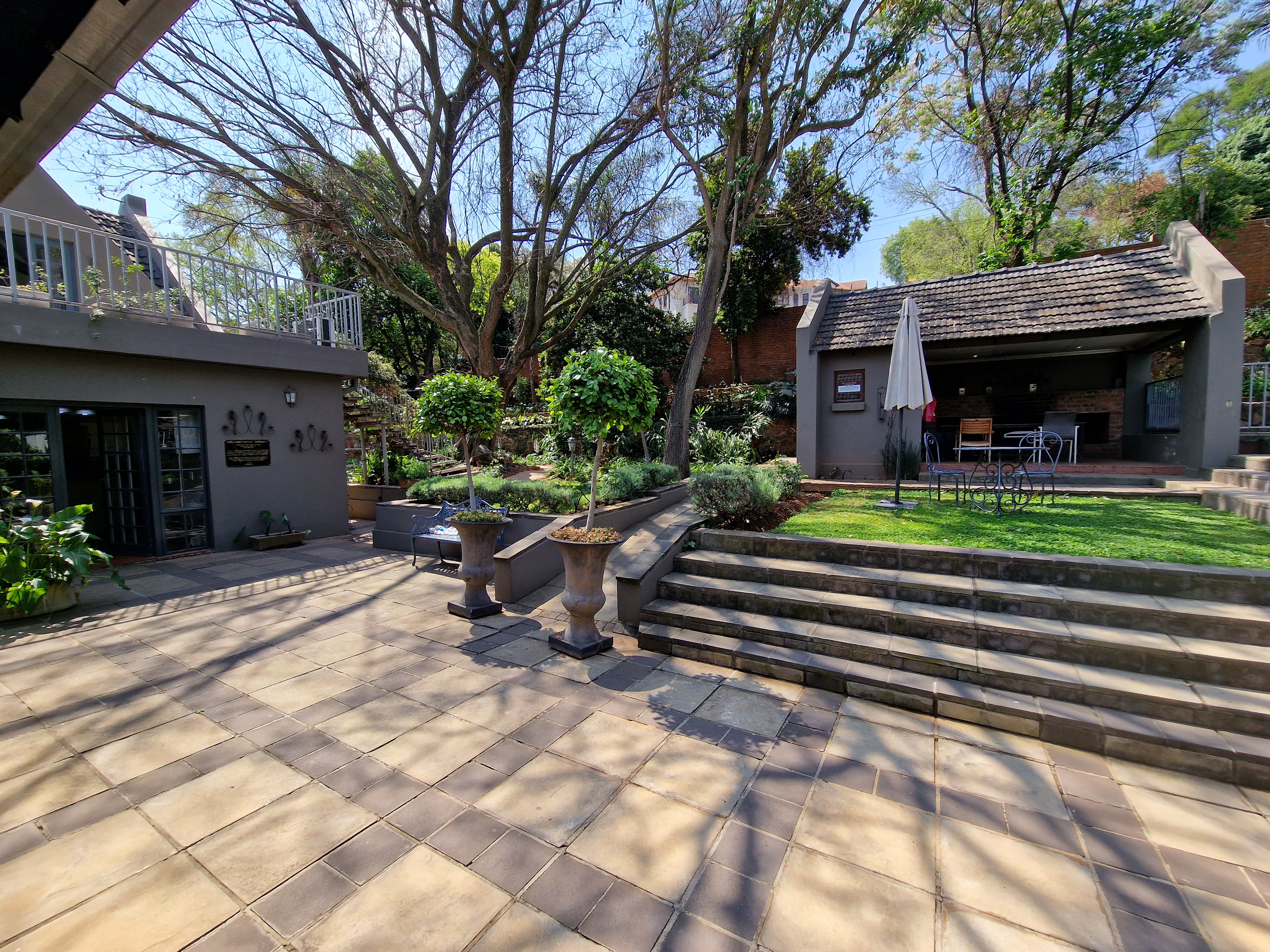 − Expansive garden and outdoor entertainment area