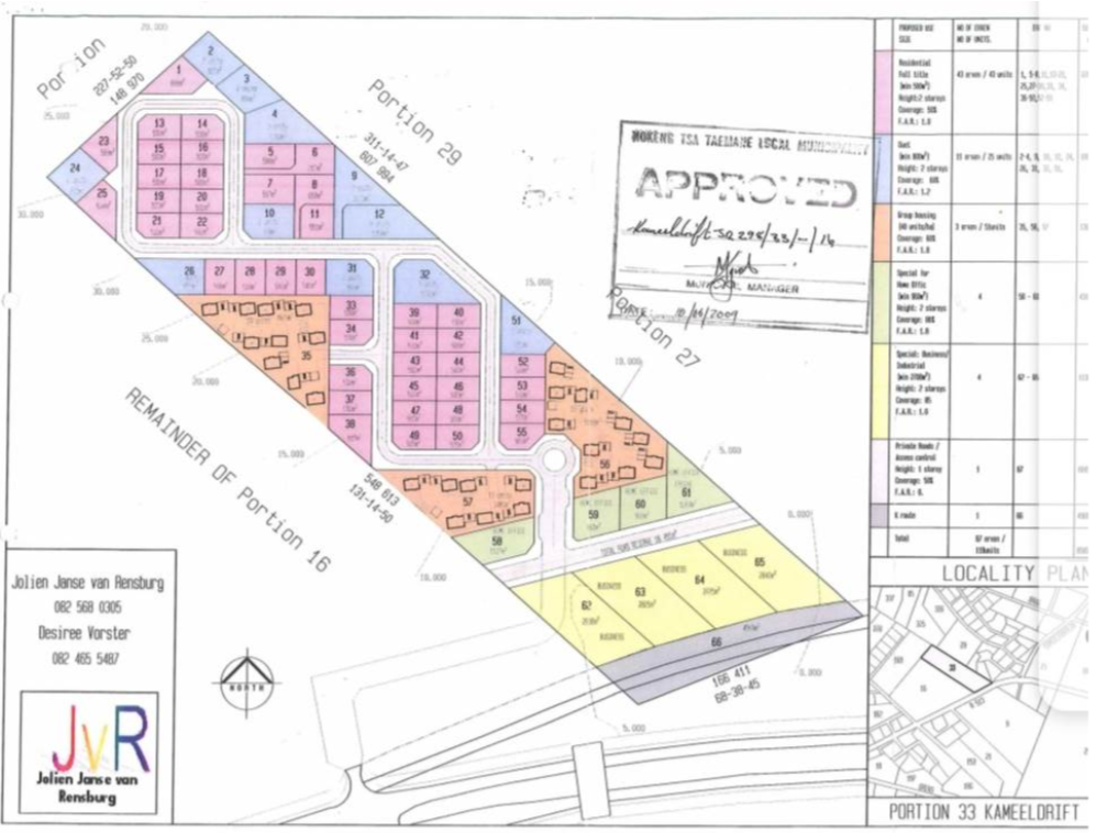 This is a great combination of commercial and residential with both full title, sectional title and/or high-density residential properties The site layout plan has been approved. Zoning includes: