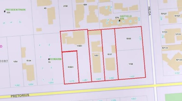 The consolidation of six residential stands into a single 7,726m² erf is a rare opportunity in this fully developed area. The site comprises six residential erven being Erf 57 RE, Erf 57/1, Erf 58 RE, Erf 58/1, Erf 603 RE, Erf 603/1.