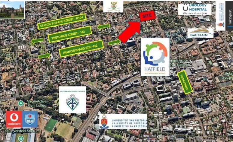 This prime development site is adjacent to the Hatfield Business Zone and the University of Pretoria, serving as a link between the academic precinct and the commercial core, fostering a greater "University Precinct" environment.
