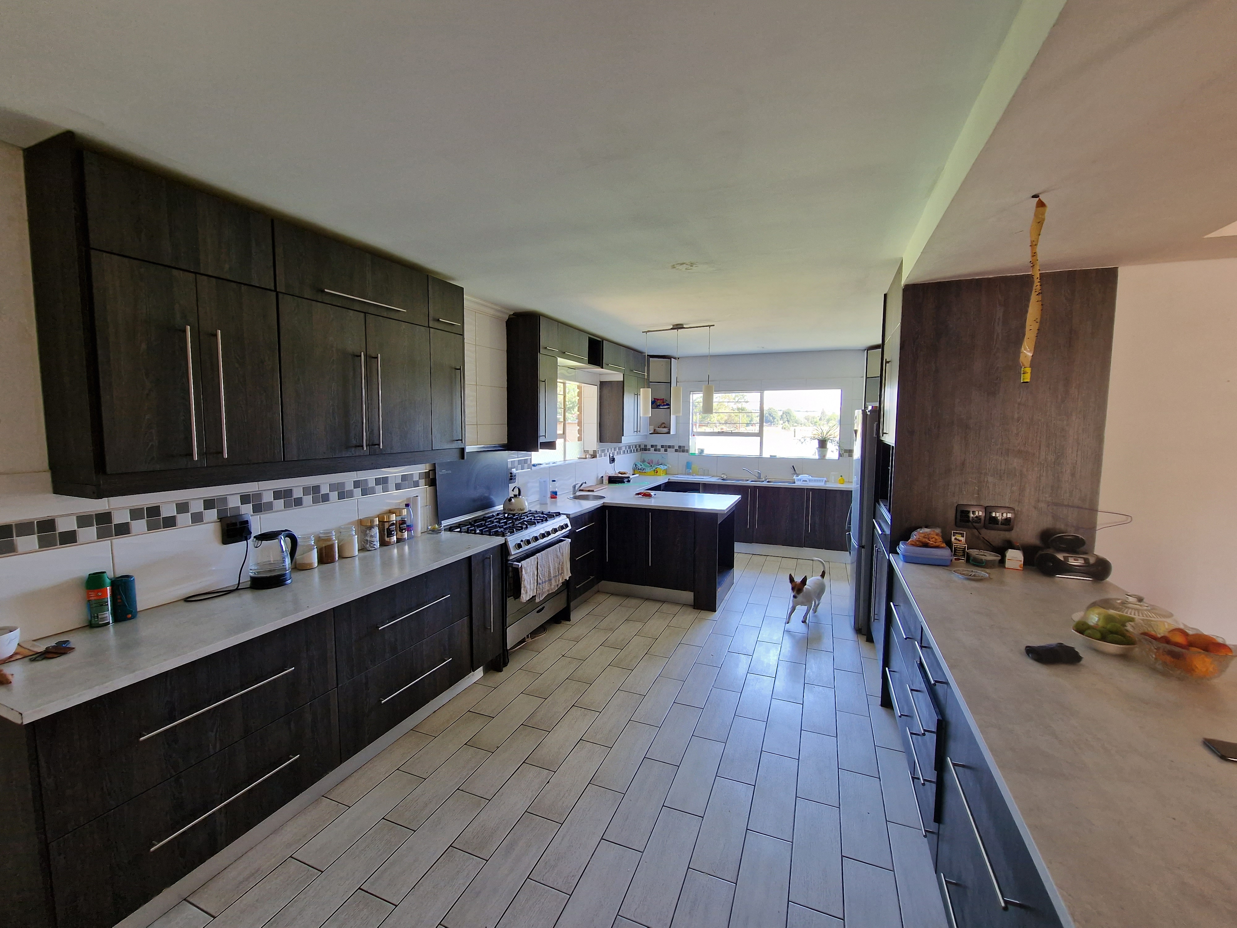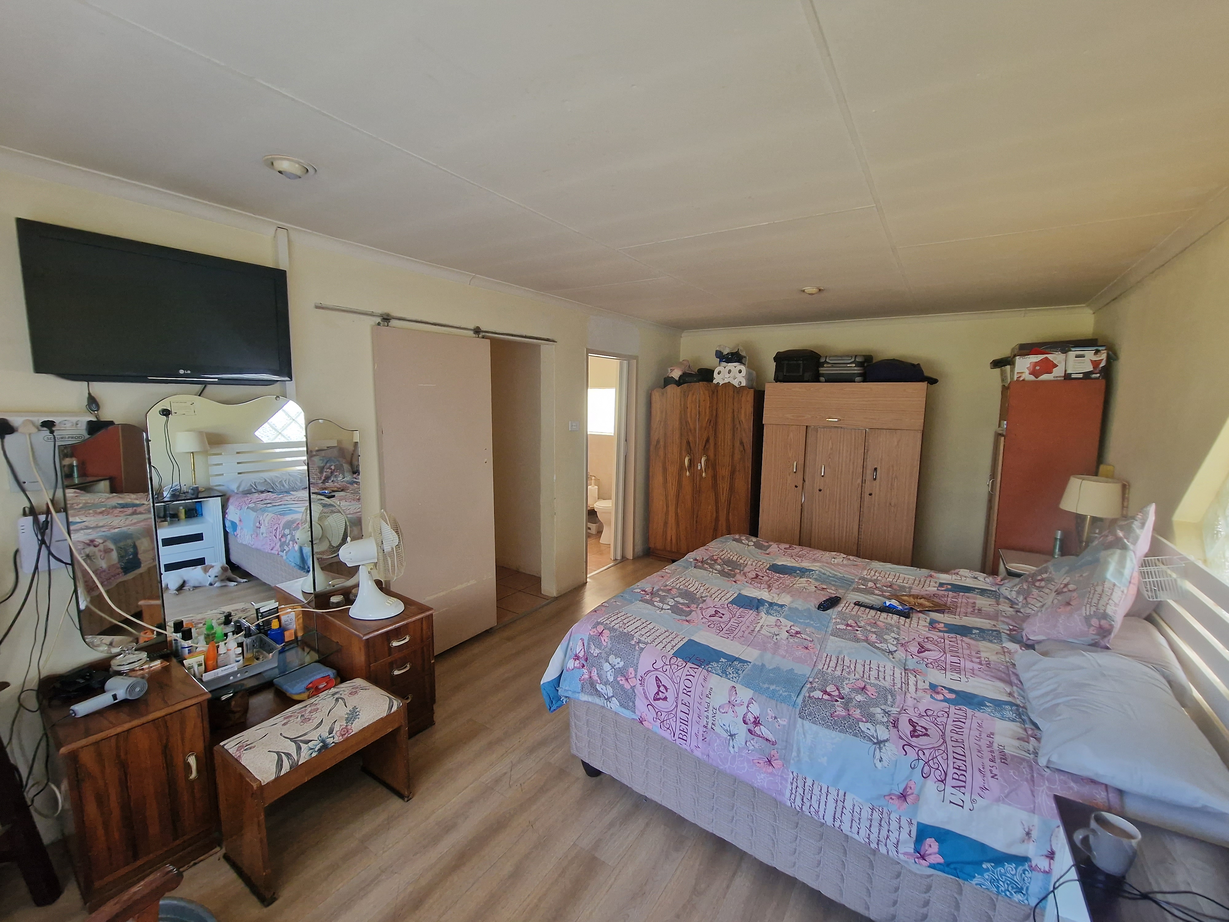 The main home is generously proportioned and designed for flexible living. It offers 5 bedrooms, 2 bathrooms, two living areas, an open-plan dining area, a spacious kitchen with ample cupboard space, and a separate laundry room.